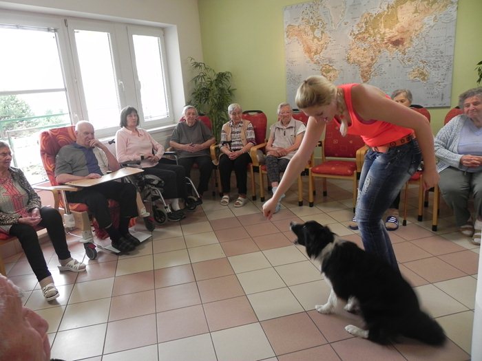 Ve středu dopoledne 10. srpna jsme v našem domově s radostí po roce opět uvítali skvělou fenku Brittku s její trenérkou Lenkou Sobotkovou, která nám připravila velmi milé vystoupení s ukázkami různých psích triků a kousků.