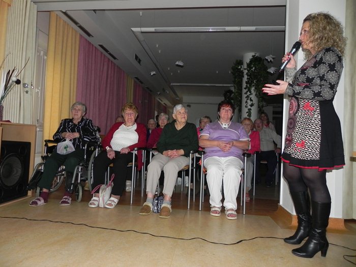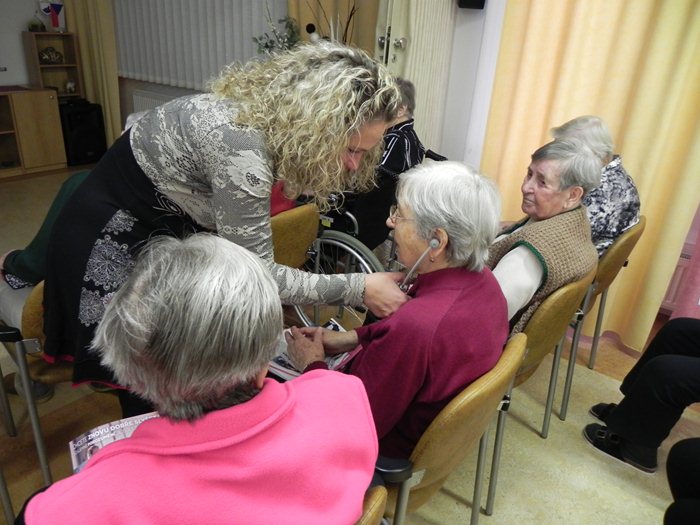 Lektorka seniorům představila bezdrátová TV sluchátka. Dále je informovala o typech sluchadel, jejich použití a péči. Klienti se také dozvěděli o možnosti jak získat příspěvek od zdravotní pojišťovny na sluchátko. Hodinový blok vedla paní Lenka Svobodová Pavelcová – audiologická sestra, která dokázala klienty i personál zaujmout. Byla možnost vyzkoušet si bezdrátová TV sluchátka. Všichni si odnesli hodně důležitých informací.