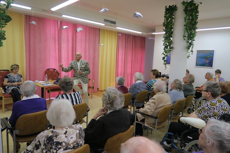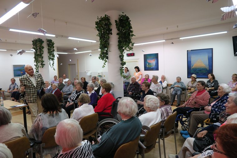 Toto krásné společné odpoledne zahájil pan ředitel uvítáním hostů, a potom už si vzal neomylně slovo pan Přeučil a nedovolil nám ani na chviličku zapochybovat o tom, že je to noblesní člověk plný elegance a úcty k ženám. Povídali nám o svých začátcích v herecké kariéře, prokládali to vtipnými historkami z natáčení a paní Hrušková, která je mimochodem stále krásná a milá žena, nám zazpívala píseň z pohádky Popelka a z divadelního představení Staré pověsti České.