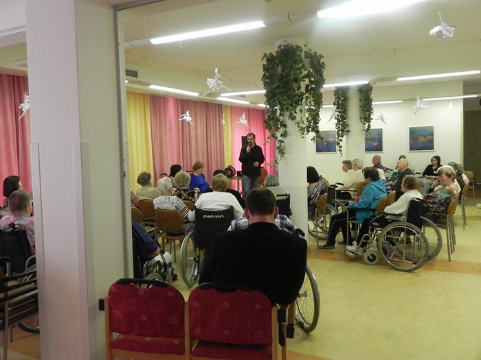 Dne 7. února 2017 jsme s velkým potěšením přivítali ve společenské místnosti našeho domova paní Miriam Kantorkovou, přátelskou vitální ženu, která společně se svým společníkem – operním pěvcem - panem Šimonem Pečenkou, vykouzlila úsměv na tváři každého, kdo se této přátelské besedy účastnil. Paní Kantorková vyprávěla o svých kariérních začátcích, pan Pečenka ji svým ostrovtipem doplňoval a atmosféru umocňoval svými slovními i hudebními vstupy, které byly velmi dobře načasované a při kterých se naši klienti svým zpěvem přidávali.