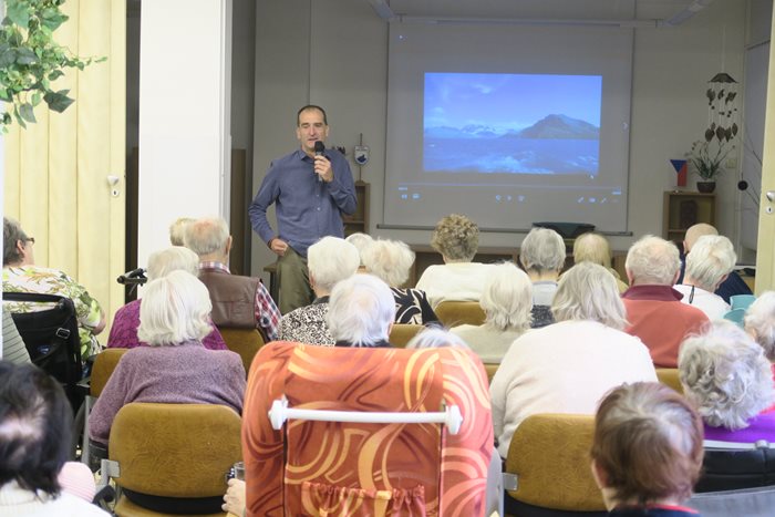 Klienti v našem domově si vyslechli poutavé povídání brněnského mořeplavce Jiřího Denka o tom, jak se svou ženou a pětiletou dcerou propluli, jako první česká loď, v srpnu 2019 NORTHWEST PASAGE. Před vyplutím cestovatele provázely noci nabité starostmi a usilovná příprava. Bez znalostí o kontinentu by nemohl Středoevropan plavbu uskutečnit. Poslední stisky rukou, políbení, rozloučení s nejbližšími a přáteli…. Rodina se vydala vstříc bílému kontinentu do naprosté nejistoty, rizika a nebezpečí. Ne vždy to bylo dramatické. Zažili také romantiku a nečekaná setkání tisícového počtu tučňáků patagonských, tuleňů a rypoušů sloních. Po zdolání ledové cesty a překonání sebe sama se nakonec dostaví euforie a nadšení z úspěchu.