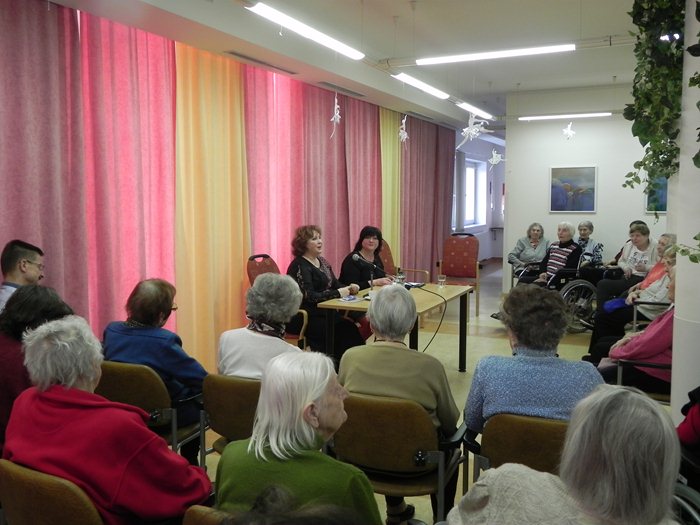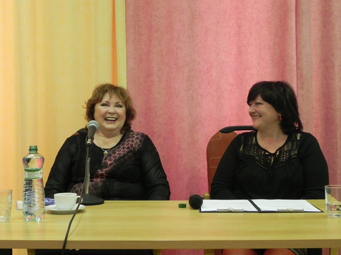 Paní Naďu Konvalinkovou celý sál srdečně přivítal starou krásnou písní Bílé konvalinky. Paní Konvalinková byla velmi potěšena a rozpovídala se o svých hereckých začátcích. Následoval hlavní blok otázek a odpovědí. Byli jsme nesmírně nadšeni s jakou profesionalitou a úžasnou volností paní Konvalinková hovořila o svém profesním životě, svých koníčcích, přátelství s paní Fialovou a dalšími populárními herci, o nadaci Rozum a cit, „probrali“ jsme i řadu jejích osvědčených kuchařských receptů. V průběhu besedy nám přednesla i nádherný monolog ze hry. Vtip, srdečná otevřenost a příjemné vystupování paní Nadi bylo odměněno velkým potleskem, květinou a pozornostmi z naší keramické dílny.