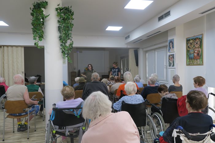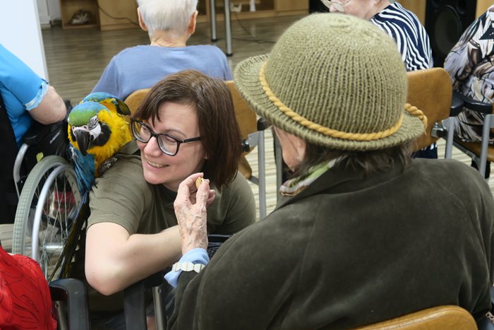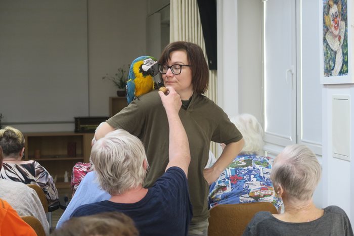 Jedním z dlouhodobých projektů našeho domova je spolupráce se Zologickou zahradou Brno týkající se adopce zvířátka. Předání a podepsání darovací smlouvy započalo před šestnácti lety, kdy nás navštívili zaměstnanci ZOO a papoušek Eda z rodu Ara Ararauna, kterého si klienti vybrali a adoptovali.