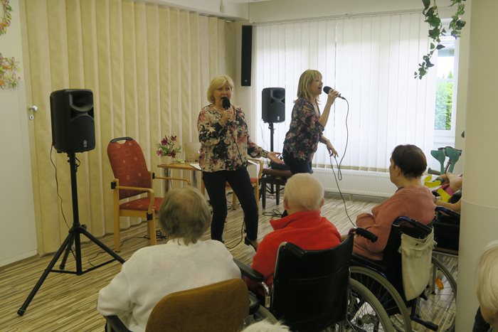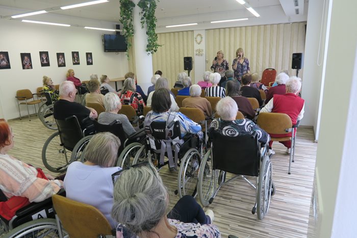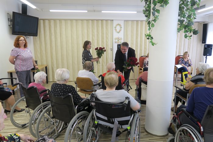 V našem domově jsme Den matek oslavili ve společnosti Hany Švejnohové a Lenky Filipové - Kudelové v pondělí 13. května hudebním pořadem „Všechny barvy lásky“. V průběhu pořadu se k oběma dámám přidali starosta městské části Starý Lískovec Mgr. Vladan Krásný a místostarosta Mgr. Jiří Dvořáček. Poblahopřáli k tomuto svátku všem klientkám a předali jim růžičky. Pořad byl plný vyprávění a vzpomínání na nejrůznější typy lásek a šansonů na tato témata. Příjemné dopoledne uplynulo jako voda a my už se těšíme na příští příjemné setkání.