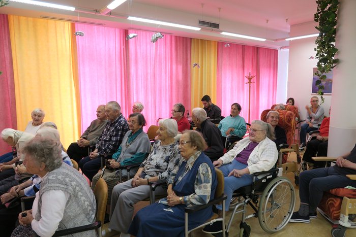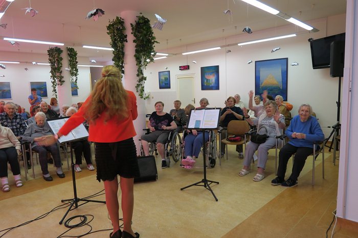 Dnešní dopoledne nás navštívilo hudební divadlo Slunečnice. Připravili si pro klienty písně z jejich mladých let, které bravurně zazpívala mladá talentovaná zpěvačka Zuzana Smijová.
