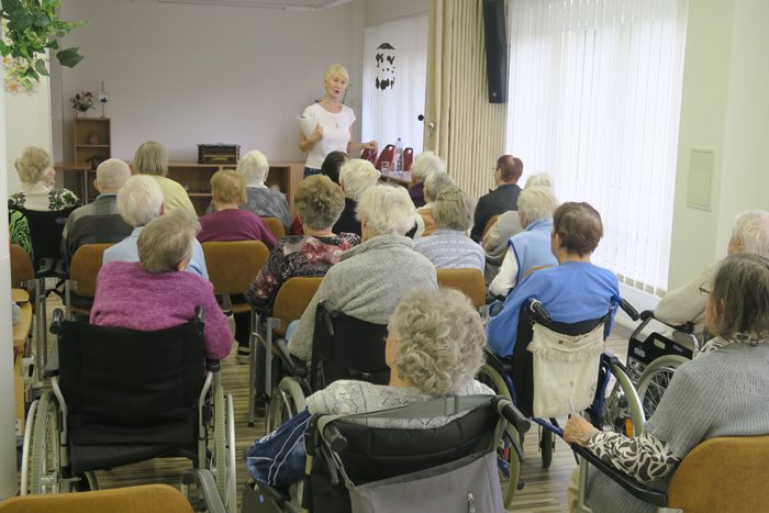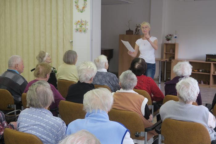 Mezi přednesenými básněmi nesměly chybět „Na břehu řeky Svratky“ autora Vítězslava Nezvala, „Za trochu lásky šel bych světa kraj“ od Jaroslava Vrchlického, „Polednice“ od Karla Jaromíra Erbena, „Poštovní schránka“ od Jiřího Wolkera a „Máj“ od Karla Hynka Máchy. Na přání našich klientů zazněly básně „Kolik příležitostí má růže“ od Jana Skácela a „Láska“ od Jana Nerudy. A stejně jako minule, jsme si i tentokrát potrénovali naši paměť s básní „Lesní studánka“ od Josefa Václava Sládka. Všechny básně potvrdili krásu a malebnost českého jazyka a přenesly nás alespoň na chviličku zpět do časů dětství a prvních lásek.