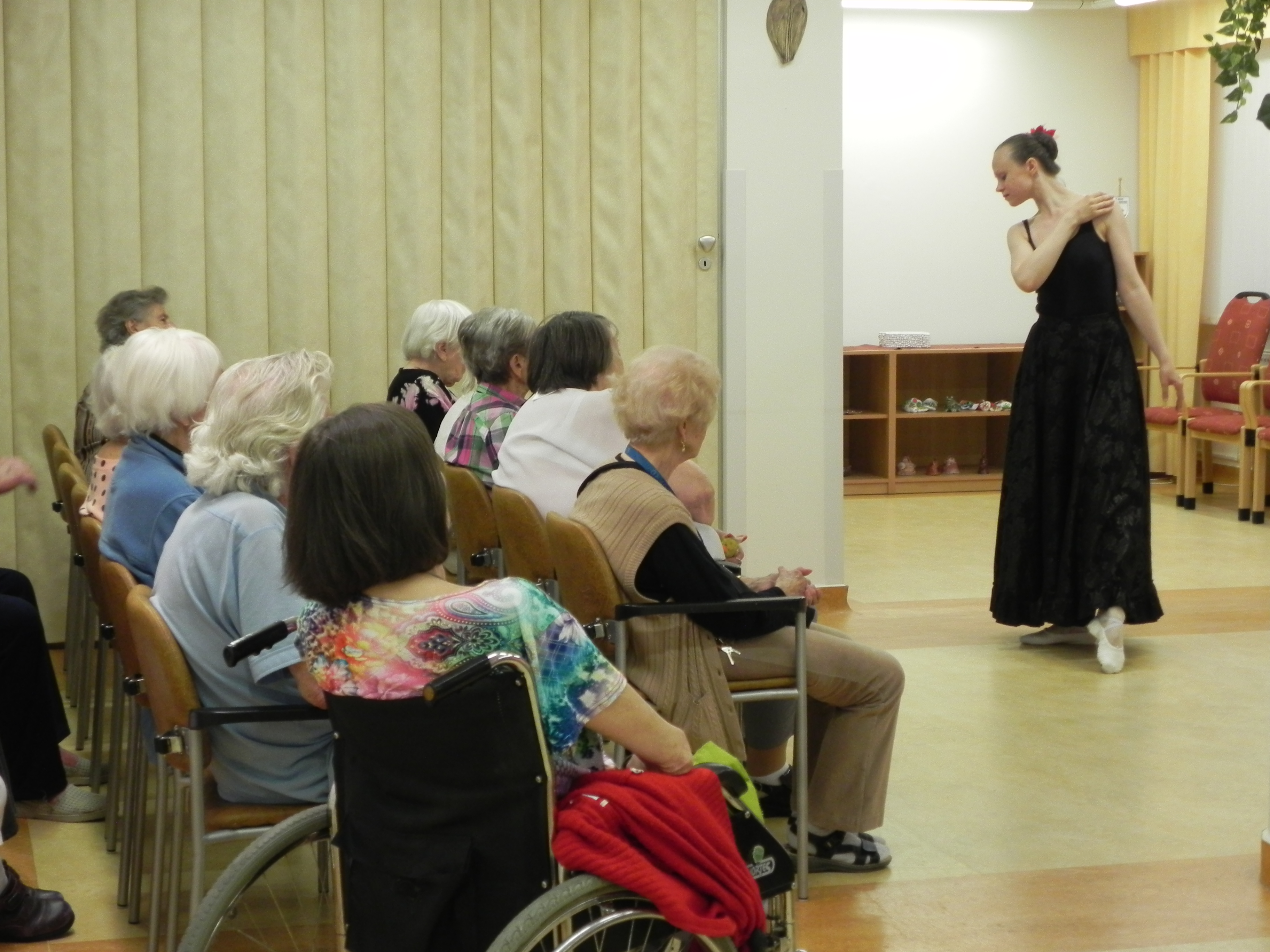 Jak už se u nás v domově stává zvykem, téměř každý týden se můžeme těšit na nevídaný kulturní zážitek, povětšinou hudebního rázu. Týden po vystoupení cimbálky Fujárka bylo na programu vystoupení Dua Ruggieri. Skládá se z manželské dvojice, kde pan Giancarlo Ruggieri „obstarává“ zpěv a paní Soňa Ruggieri tančí. Pan Ruggieri hned od počátku uchvátil především svým výrazným, hlubokým hlasem, který se perfektně hodil jak do klasických písní, tak hlavně do italských rytmů, kterých se bravurně zhostil. Paní Soňa ladným pohybem ozdobila nejen písně, zpívané svým manželem, ohromila ale i mimořádnými tanečními sóly. Uměla se neuvěřitelně převtělovat a různým hudebním stylům přizpůsobovala nejen tempo a styl tance, ale i svou vizáž – mohli jsme ji spatřit v kimonu, tradičním kroji či ve společenských šatech. Na precizním a dech beroucím vystoupení Dua Ruggieri bylo znát, že svou práci dělají hlavně pro radost z hudby a pohybu a pro uspokojení obecenstva, klienti a zaměstnanci domova jejich nadšení a profesionální výkon naopak srdečně opláceli svými úsměvy a upřímným potleskem. Na závěr programu obdrželo duo malé pozornosti z keramické dílny, které manželům vykouzlily vděčné úsměvy na tváři a my se možná už brzy dočkáme další vítané návštěvy této dvojice. .