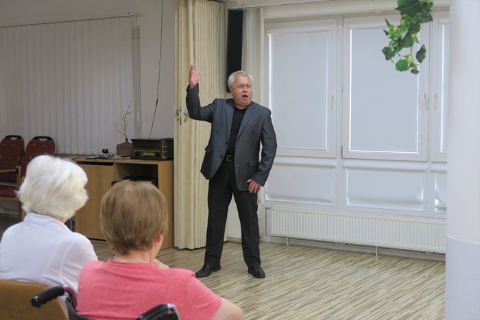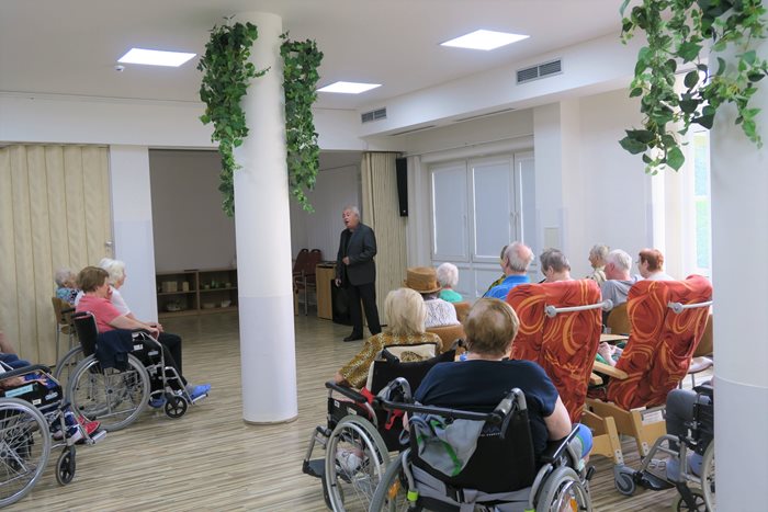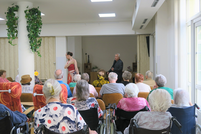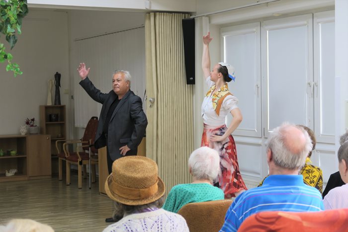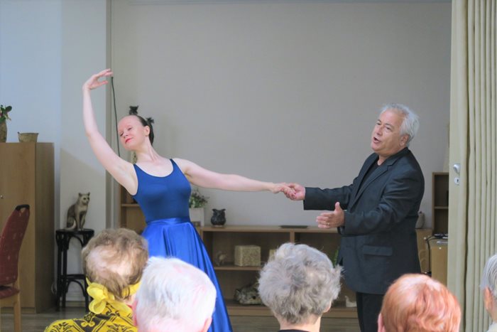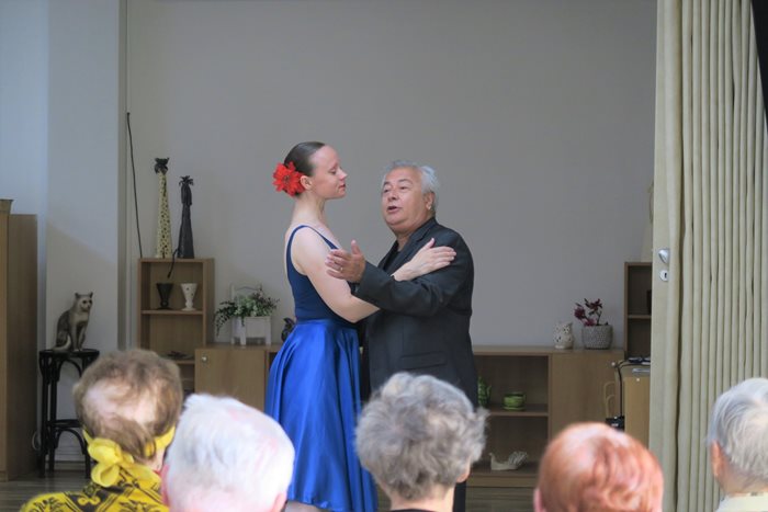 Baletka Soňa Ruggieri a italský operetní zpěvák Giancarlo Ruggieri přijeli zatančit a zazpívat našim klientům a italskými skladbami probudili opravdovou letní atmosféru v Domově. Zazněly skladby jako Vaga luna, dále píseň z opery Carmen, jako je například Toreador, či z baletní verze skladba Seguidilla a mnoho dalších.