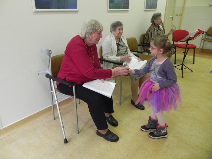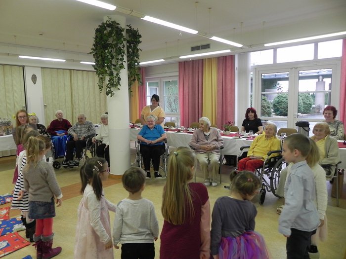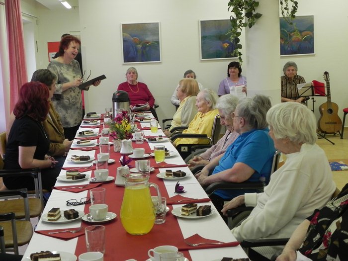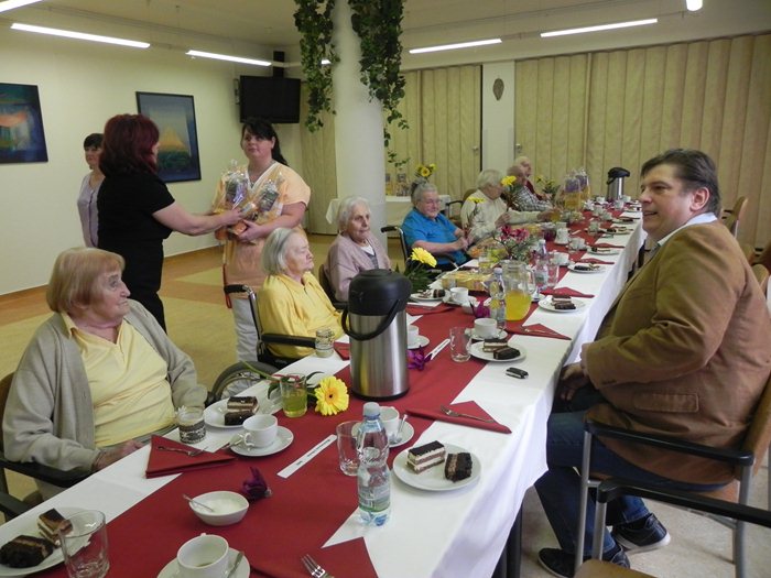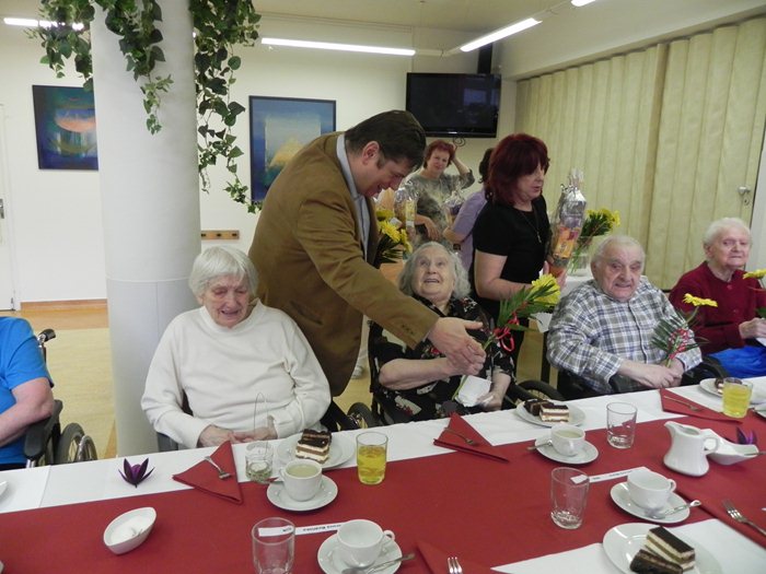 22. listopad patřil v našem domově především klientům, kteří v měsíci říjnu, listopadu a prosinci oslavili (a oslaví) významná životní jubilea. Oslavencům přišli popřát všechno nejlepší zastupitelé z ÚMČ Starý Lískovec, pan starosta Mgr. Vladan Krásný a kulturní referentka paní Mária Liptáková, kteří kromě vlídného slova předali jubilantům také kytičky a dárkové balíčky s pochutinami. Celá akce se nesla ve slavnostním duchu. K příjemné konverzaci bylo připraveno chutné pohoštění, sladký dezert a káva. Nechybělo ani zpívání národních písní s našimi zpěvačkami z řad obyvatelů domova. Kulturní zážitek umocnilo milé taneční a pěvecké vystoupení dětí z MŠ Oderská.