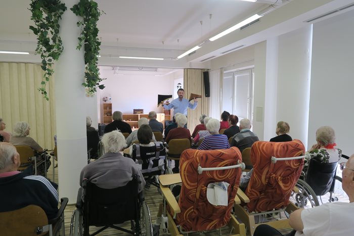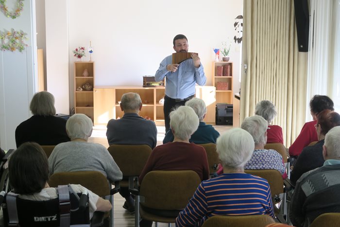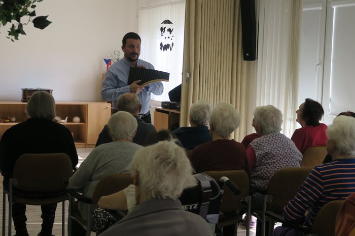 Dnes nás navštívil pan Petr Tomeček s netradičním hudebním nástrojem, kterým je panova flétna, aby nám ještě více zpříjemnil toto prosluněné podzimní odpoledne.