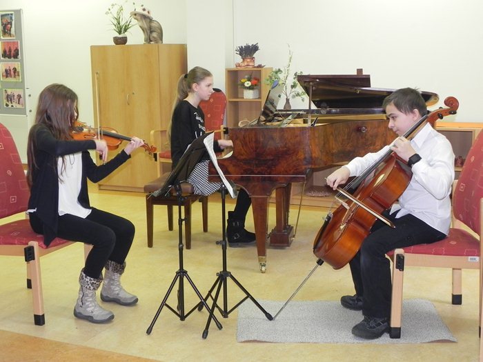 Letos poprvé nás svou návštěvou potěšili žáci a pedagogové ze ZUŠ F. Jílka. Dopolední matiné uvedla a vystoupením posluchače provázela pani učitelka Hana Vojtková.