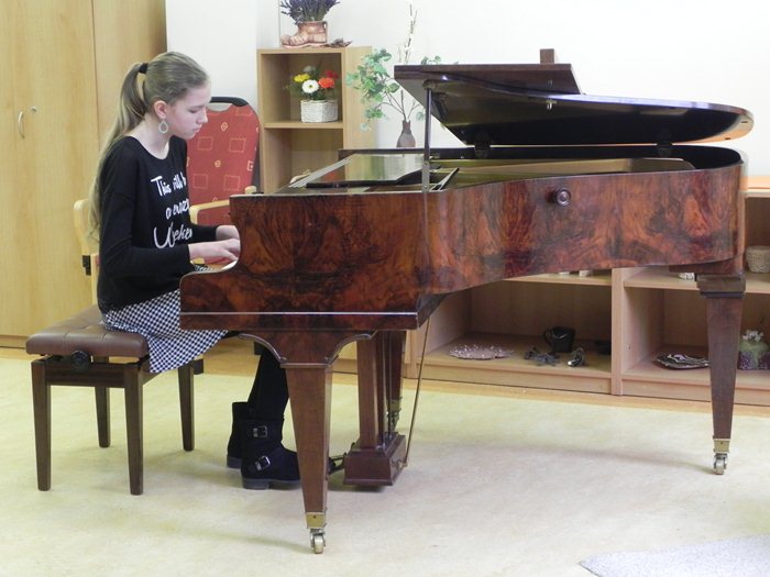 Mezi vystupujícími nechyběla ani Klára Francová, studentka 6. ročníku, která se může pyšnit nejvyšším oceněním z mezinárodní soutěže mladých klavíristů z října 2015, a letos se taky připravuje na velkou soutěž, která se uskuteční v Budapešti.
