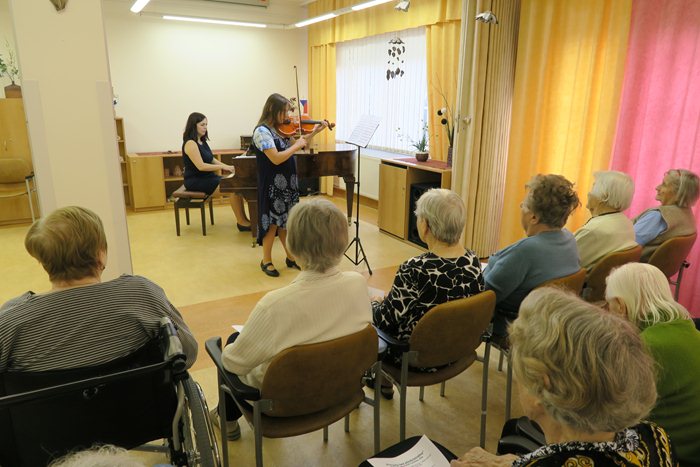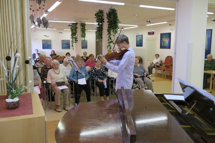 Ve středu 27. září 2017 nás opět navštívili žáci ZUŠ Františka Jílka se svými učiteli a předvedli skladby od známých autorů. V podání klavíristek zazněla Polonéza d-moll od F. Schuberta, na violu zazněly Francouzské tance od M. Maraise, zpěvačky uvedly Ukolébavku od B. Martinů a Oiseaux si tous les ans od W. A. Mozarta. Na závěr zazněla Sonáta B-dur Allegro od W. A. Mozarta a Toccato od Z. Vítkinda na klavír. Celým dopolednem nás příjemně provedla paní učitelka Jandová. Děkujeme všem interpretům i jejich zkušeným doprovodům za jejich výkony a už dnes se těšíme na 22. listopadu, kdy nás opět přijedou potěšit dalšími skladbami ze svého repertoáru.