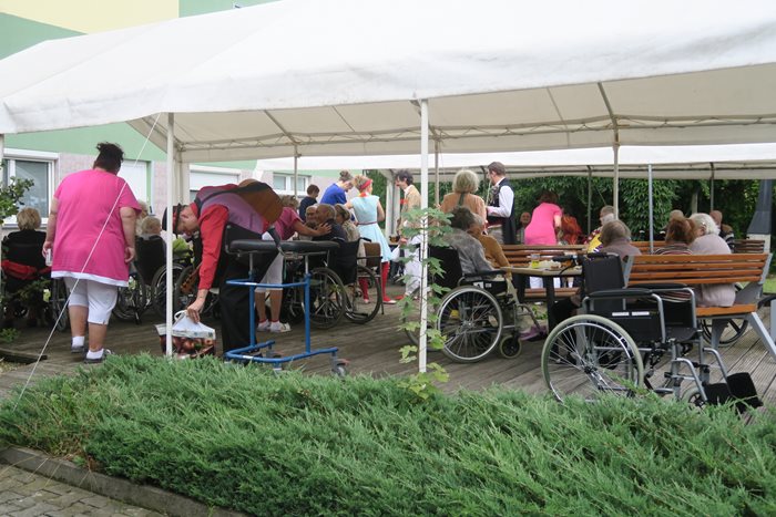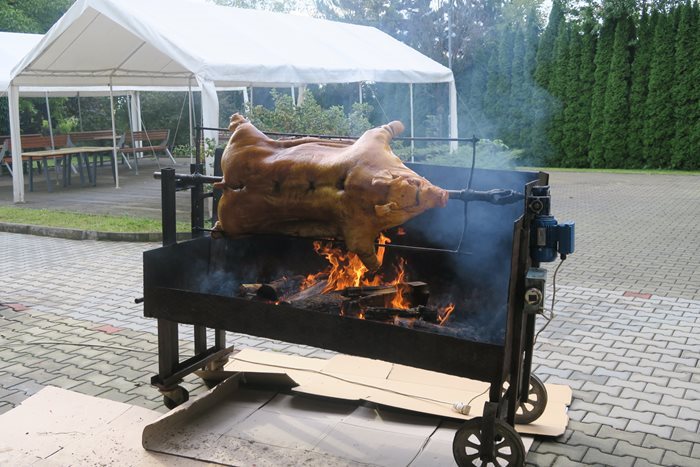 Ani letos nemohlo v našem Domově pro seniory chybět tradiční rozloučení s létem. I přes to, že předpověď počasí nevypadala příznivě, klienty to neodradilo a rádi poseděli venku na zahradě pod altánem, kde si povídali a sledovali opékání selátka na rožni.