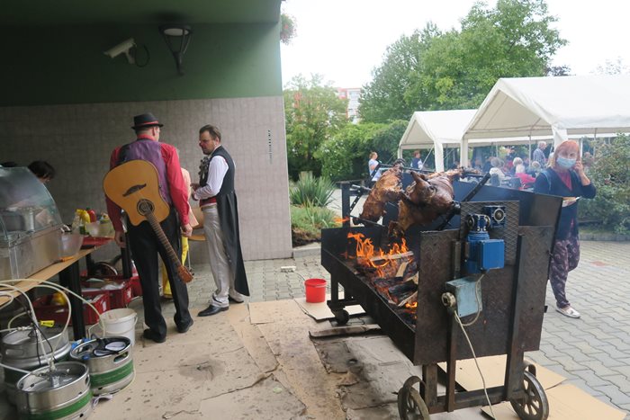 Selátko se na zahradě domova opékalo již od ranních hodin a vonělo po celém areálu. Někteří klienti chodili na kontrolu i během dopoledne a nemohli se dočkat odpoledne, kdy začala ochutnávka. Samozřejmě nechyběla točená žlutá limonáda a nealko pivo. O zábavu, nejen klientů a jejich rodinných příslušníků, ale i ostatních účastníků akce, se postarali naši úžasní spolupracující Zdravotní klauni, kteří přijeli ve velkém počtu. Přivezli radost, smích a dobrou náladu. Společně si všichni za doprovodu kytary zazpívali písničky a zavzpomínali na „staré dobré časy“.