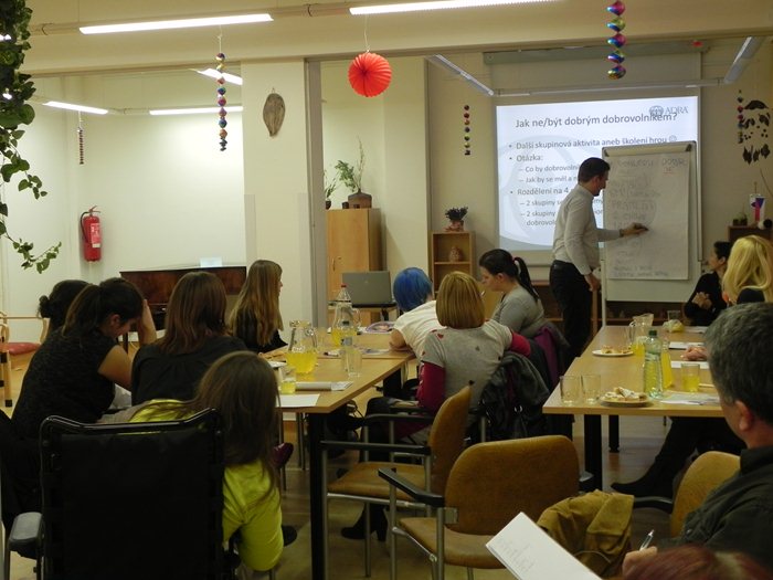 Školení se neslo v duchu sdělování důležitých informací a účastníci byli hravou formou zapojeni do jeho průběhu. Přednáška totiž zahrnovala i interaktivní hry, které sloužily k vzájemnému seznámení potenciálních dobrovolníků i k možnosti vžít se do kůže klientů.