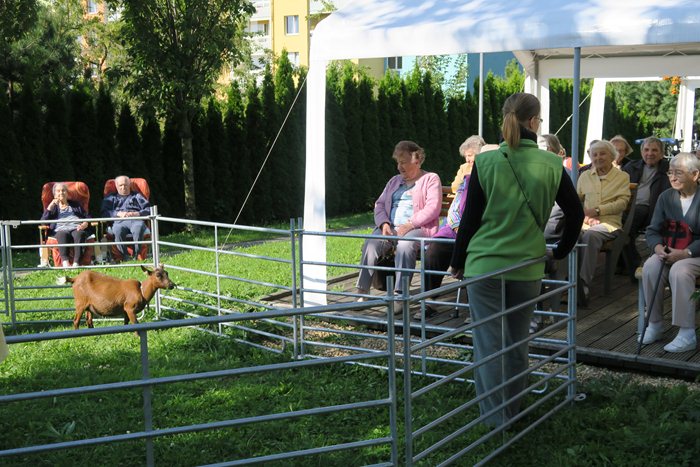 Klientům představili Holandskou zakrslou kozu Bětku a její roztomilá kůzlátka Jeníčka a Mařenku. Na programu byla nejenom ukázka těchto roztomilých skotačivých tvorů, které si mohli naši klienti nakrmit a pohladit, ale také seznámení se základním programem, které probíhá v Lamacentru.