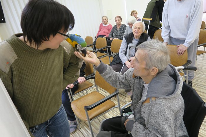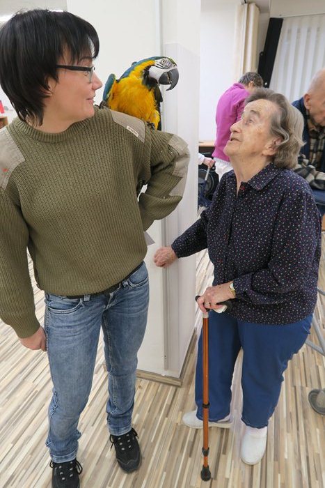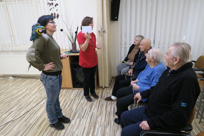 Stalo se již tradicí, že každým rokem v únoru k nám do Domova pro seniory Mikuláškovo náměstí v Brně přijíždí náš adoptivní „syn“ papoušek rodu Ara ararauna, Eda.
