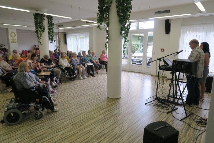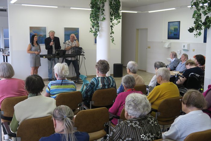 My jsme si tento svátek připomněli u nás v domově ve středu 16. května . Našim klientkám přišli popřát představitelé městské části Brno-Starý Lískovec. Kromě krásných rudých růží, blahopřání a slov díků za to, že vzaly na sebe roli matky, byl pro naše seniorky připraven bohatý kulturní program. O ten se postaralo umělecké duo Oldies Band Brno. Zpěvák Richard Harabus a zpěvačka Aneta Horská s kytičkou písní popřáli a zazpívali matkám šlágry Zvonky štěstí, Pro mámu, Dvě malá křídla tu nejsou až po Slzy tvý mámy šedivý . V repertoáru nechyběly ani lidové písně z Moravy při kterých se roztančily nožky do rytmu. Jako hosta měli přizváni operního pěvce Milana Voldřicha a v jeho podání zazněly písně od Botticeliho, árie z opery Riggolleta a Tosky. Písně s tématikou lásky, jež je spojována s osobou maminky rozzářila a zarosila nejedno oko.