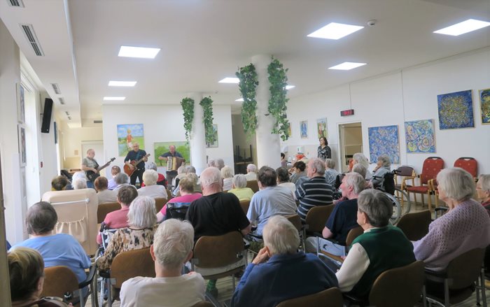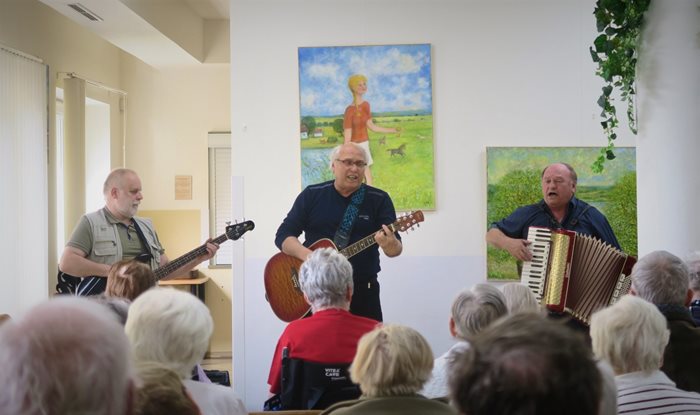 K příležitosti oslavy Dne matek k nám zavítala kapela Dolňáci, tři sympatičtí muži, kteří nejenom našim klientkám udělali radost svou pozitivní náladou a příjemným hudebním dopolednem. Zazněly písně lidové, trampské, country, ale také písně na přání klientů. V průběhu vystoupení nás poctili svojí návštěvou také zástupci MČ Brno – Starý Lískovec, kteří všem klientkám rozdali krásné růže a společně jsme dále pokračovali v poslechu libozvučné hudby.