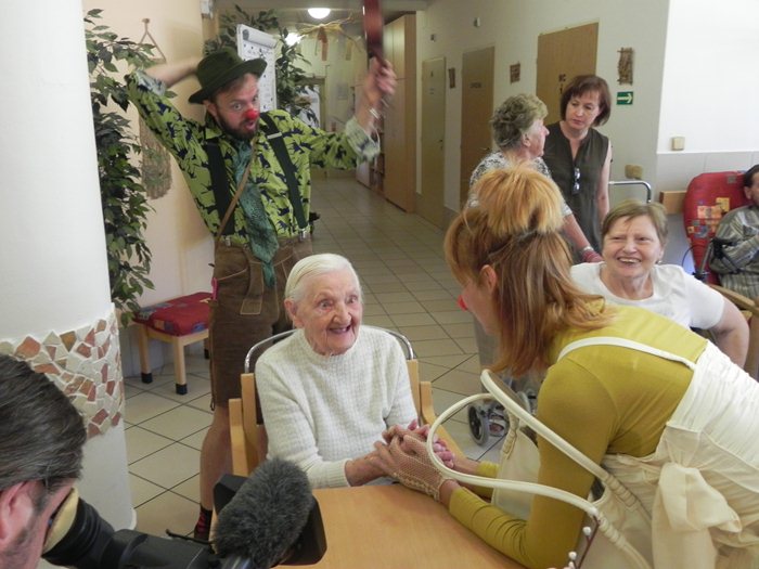 To je zčásti pravda, ale nezisková organizace Zdravotní klaun dokazuje, že kromě návštěv dětských oddělení v nemocnicích a pořádání ostatních akcí zaměřených na děti a dospívající, dokáže zaujmout i tu nejstarší věkovou skupinu. Domovů pro seniory navštěvují hned několik a sklízí zde velký úspěch. Není se co divit – nejen děti v nelehké životní situaci, ale i senioři v období podzimu života potřebují rozveselit, pomoci navodit jiné myšlenky než ty chmurné, šedé, které člověka snadno pohltí. Konkrétně do našeho domova dochází Zdravotní klauni jedenkrát do týdne, a to vždy v pátek, kdy mají v rukou pokaždé jiné oddělení – to aby postupně přišlo na všechny. Jejich návštěvy jsou očekávané a my vidíme, že toto zpestření má velký smysl.