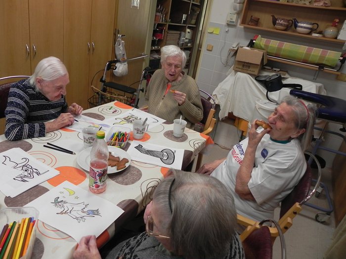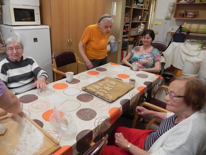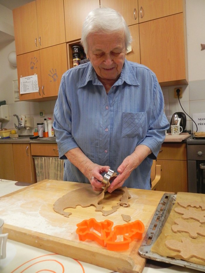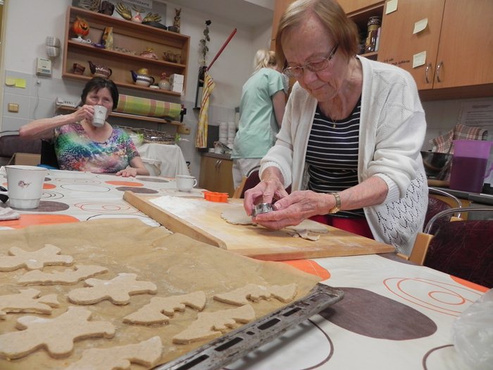 V týdnu od 24. do 27. dubna se konalo skupinové pečení perníčků v ergoterapeutické kuchyňce našeho domova. Každý den byl vyhrazen pro jedno oddělení. Letos se tato akce konala v týdnu ve znamení čarodějnic. A právě na motivy čarodějnic a tajemna byla i vykrajovátka. Klienti si mohli vybrat mezi duchem, perníkovým panáčkem, čarodějnicí na koštěti a netopýrem. Těsto bylo vyváleno ergoterapeutkou a klienti dle svých možností vykrajovali. Každé těsto bylo jedinečné, čemuž následně odpovídala také chuť perníčků. Během pečení se popíjel čaj s kávou a byla probrána různá témata - od kuchyně až po rodinu. Upečené perníčky, které se nesnědly při ochutnávce, mohou klienti ochutnat v rámci akce „Rej čarodějnic“, kdy bude připravena kavárna s obsluhou a dalším občerstvením.
