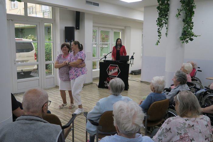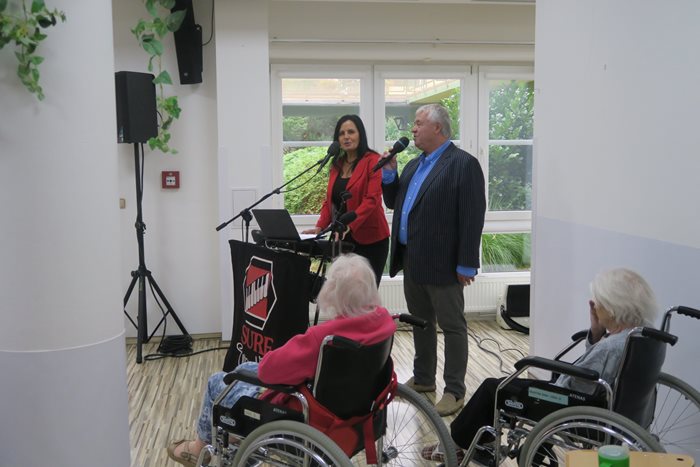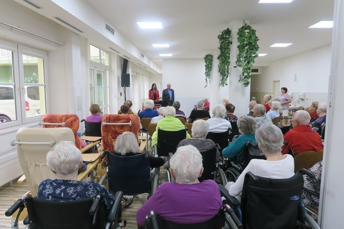 Děkujeme Evě a Vaškovi za jich laskavý přístup a nezištnost, protože věnují klientům bezplatné CD, DVD a knihy. Děkujeme rovněž sestrám naší bývalé klientky paní Pechové, které zprostředkovaly vystoupení Evy a Vaška jako poděkování za péči jejich sestry v našem domově. A co říci na závěr: „Eva a Vašek opět nezklamali“.