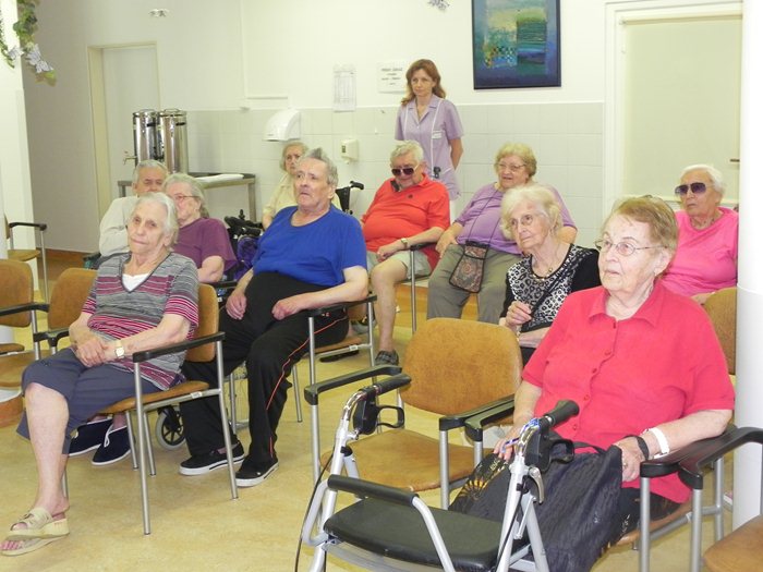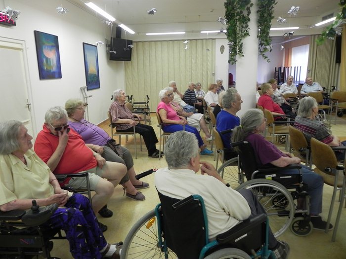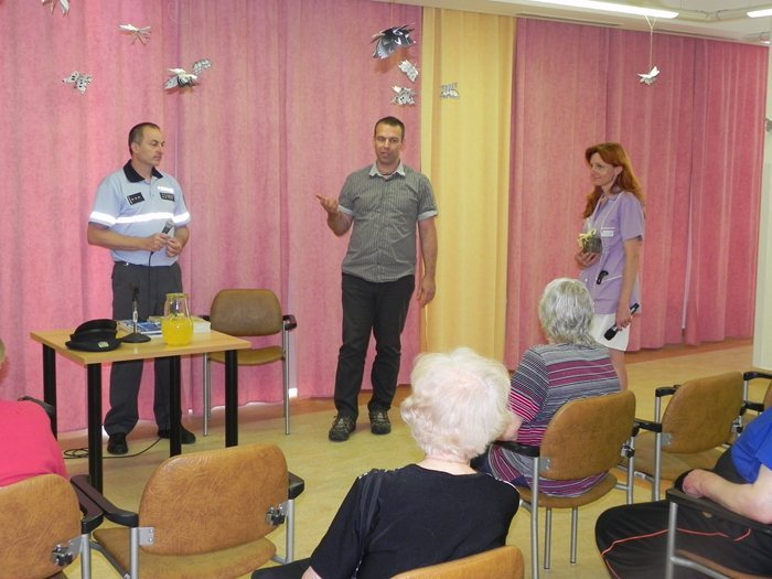 Někteří klienti domova se před začátkem akce zdáli být v napětí, možná i v nedůvěře, či jen v očekávání, co může setkání s policistou přinést. Myslím, že pan Gruška všechny obavy či nedůvěru během několika málo vteřin setřásl. Jeho přednáška se totiž nesla ve velmi neformálním duchu, plná neotřelých příkladů z praxe a trefných vtipů. Především pro občany seniorského věku, kteří jsou velmi snadnými oběťmi všech různých podvodníků a kapsářů, bylo tohle povídání jistě hodně přínosné. Vždyť stále celá řada z nich vyráží do obchodních domů na nákupy, do centra města do kaváren nebo na návštěvy. A právě tato velmi frekventovaná místa jsou přímo rájem pro páchání nekalostí. A koho jiného si vybrat, než bezbranného staršího člověka. Od pana policisty jsme slyšeli mnoho různých tipů, jak se těmto nepříjemným situacím vyhnout, či minimálně co nejvíce zmírnit důsledky tohoto protiprávního jednání. Na řadu samozřejmě přišly i velmi obtěžující telefonní hovory s různými nabídkami, ať už na mobilní služby, nebo nekvalitní a nepotřebné spotřební zboží. Rozhodně se nejednalo o jednolitý monolog pana nadpraporčíka. Na řadu přišli i samotní klienti se svými dotazy, postřehy či v neposlední řadě ne úplně vítanými zkušenostmi, které se jim bohužel nevyhnuly. I přes tyto neveselé zážitky se ale celé dopoledne neslo v klidném duchu a my jsme všichni nakonec odcházeli bohatší o nové poznatky a zkušenosti. Těsně před obědem jsme se všichni rozešli s příslibem, že toto setkání nebylo jistě poslední.