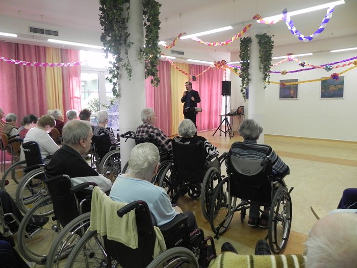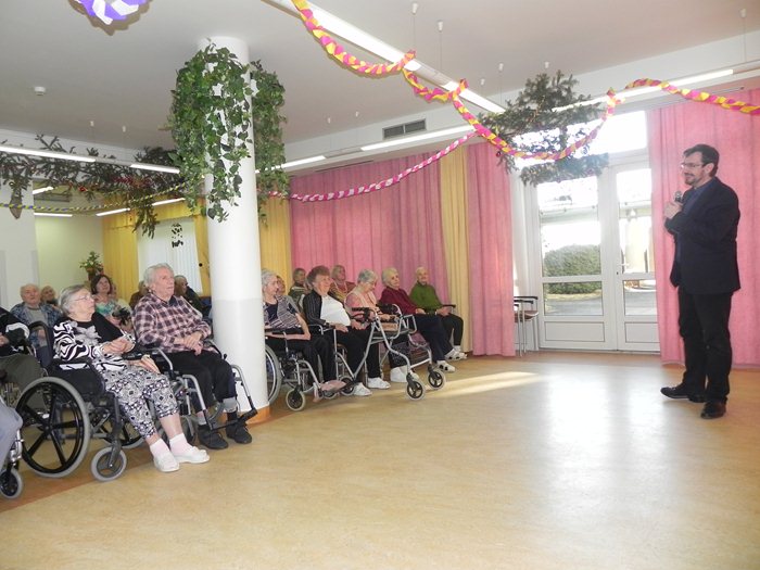 Silvestrovské oslavy odchodu starého roku a nástupu roku nového se neobejdou bez společného setkání plného radosti a veselí; i proto nás v domově navštívil umělec Šimon Pečenka, jenž nám předvedl svůj repertoár retro šlágrů a písní významných zpěváků let šedesátých.