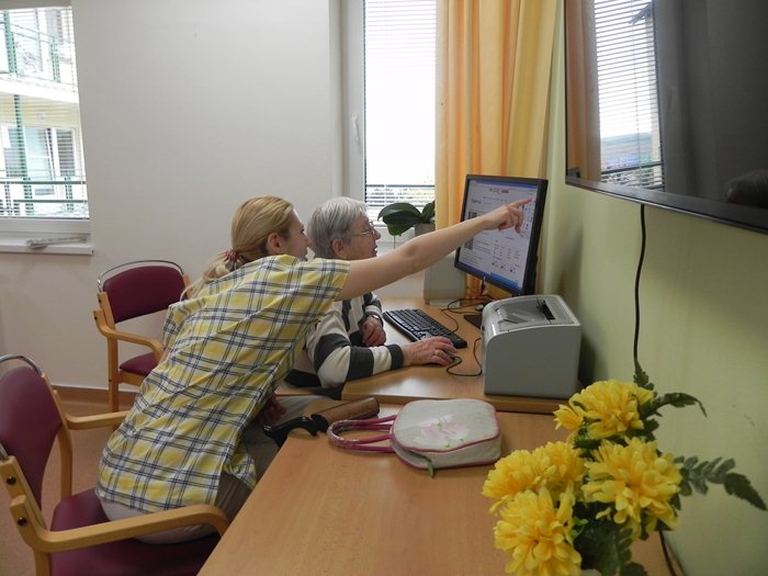 Každé úterý probíhá ve společenské místnosti oddělení C našeho domova škola internetu. Schází se zde nejen klienti bez vlastní výpočetní techniky (proto je jejich čas strávený na jediném počítači značně omezený), ale i ti, kteří ji vlastní. Zkušenější klienti se věnují surfování na internetu – vlastní emailové schránce a vyřizování pošty, ti méně zkušení si trénují dovednosti s myší a klávesnicí. Při každé internetové školičce se mnoho věcí naučíme a dobře se pobavíme.