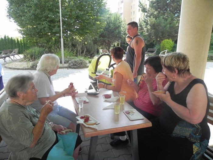 Toto přátelské setkání jsme zahájili společným zpěvem známých lidových písní na rozproudění nálady. Slunce nemilosrdně pálilo, nás však ovlažoval vánek a chladivý stín pod terasou domova. Vůně dozlatova upečených buřtů se linula do okolí zahrady a do otevřených oken domova a přilákala tak nemálo klientů i zaměstnanců.  Zábava byla navzdory úmornému „tropickému“ počasí skvělá,  každý si našel podnět k rozptýlení a buřty všem chutnaly. Léto bez slunce, rozpáleného ohně a opečených buřtů si už ani nedokážeme představit.