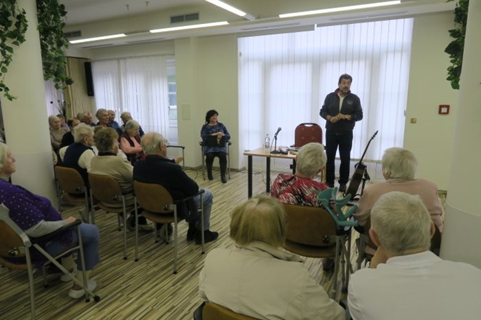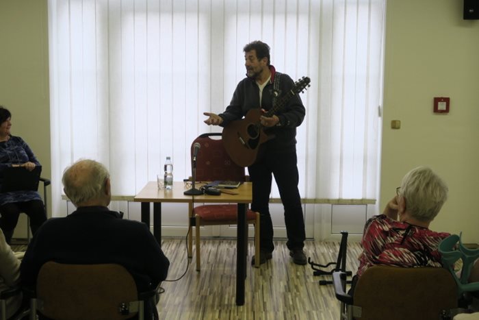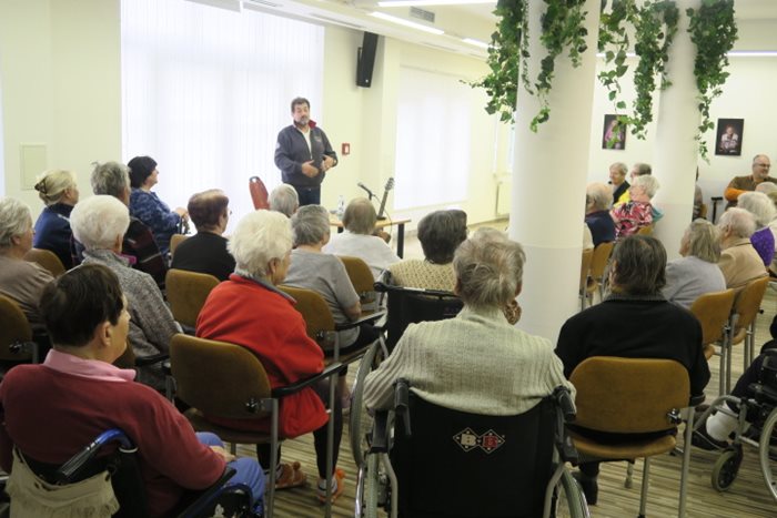 Dostaveníčko se Zdeňkem Junákem jsme si domluvili na středeční odpoledne do společenského sálu našeho domova. Známý český herec a především brněnský patriot, rozhlasový moderátor a dabér uvádí pořad „Písničky od srdce“ a s tímto pořadem zavítal mezi nás. Zaplněný sál posluchačů, laskavý humor, písničky a vyprávění z divadelního prostředí v podání oblíbeného herce, splnilo naše očekávání. Pokud byste chtěli zahrát písničku a zanechat láskyplný vzkaz nebo by Vám chyběl humor, můžete si tohoto brněnského baviče Zdeňka vyslechnout každý den po 9. hodině na brněnské rozhlasové stanici v pořadu