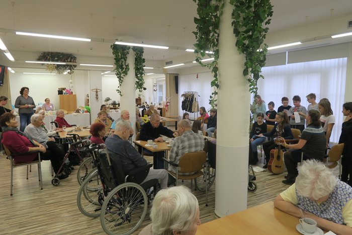 Naše jarmareční trhy otevřely své dveře návštěvníkům po 3. adventní neděli. Společenský sál se proměnil na 3 dny ve sváteční náměstí se stánky našeho tradičního zboží, posezením u dobrého punče a svařáku s ochutnávkou perníčků a cukroví. Výrobky z našich terapeutických dílen jsou pílí nejenom šikovných rukou, ale jsou vyrobené s chutí a láskou.