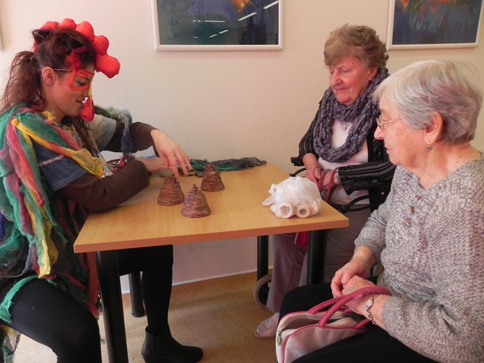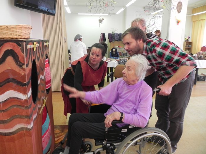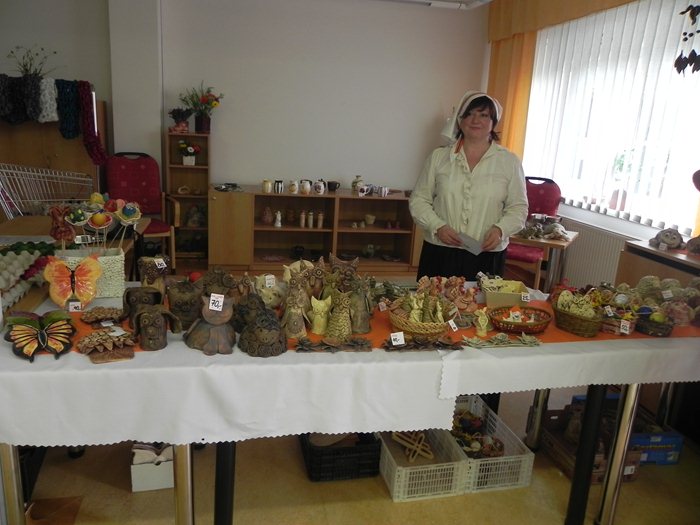 23. březen se už od brzkého rána nesl v našem domově v horečnatých přípravách. Po chodbách jsme mohli zahlédnout masku pestrobarevného kohouta, ušatého zajíčka, berušku či veselou vrbu. Důvodem byl velikonoční jarmark a nechyběla také jarmareční trhovkyně a hrnčířka. Společenský sál našeho domova se v tento den přeměnil na velikonoční trhy. K pravému velikonočnímu jarmarku patří samozřejmě i stánky s různými dárky. Klienti se mohli těšit nejen na výrobky z keramické dílny, mýdla, soli, ale také na barvená vajíčka a poutavý program. Kromě malého pohoštění v podobě kávičky, čaje a mazance na nás čekaly i odpolední zpívánky známých lidových písní. Atmosféru velikonoc umocňovaly i soutěže. Zaházeli jsme si na terč, pozorně sledovali hru „skořápky“ a říkali básničky, vše za odměnu v podobě čokoládového vajíčka. Vše bylo barevné a voňavé a dávalo tušit, že jaro již přišlo.