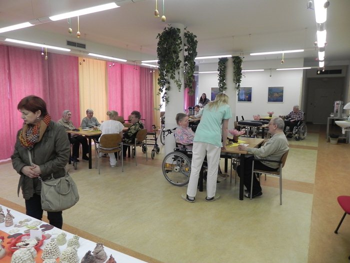 Tradiční Velikonoční jarmark mohli navštívit nejen naši klienti a zaměstnanci, ale i jejich přátelé 11. a 12. dubna, a to po celý den. Těšit se mohli z různých výrobků pocházejících z naší ergoterapeutické dílny. Mezi dárečky, kterými mohli potěšit sebe i své blízké, patřily tematické výrobky z keramiky, látky, pedigu. Také se mohli těšit z mýdel, šumivek a solí do koupele. Na jarmarku nechyběla ani čepičářka. K příjemnému nákupu bylo připraveno občerstvení kávou, čajem, limonádou, mazancem a piškotovým beránkem. Klidné posezení v naší útulné kavárničce s obsluhou zpříjemňovala hudba a pěkné filmy.