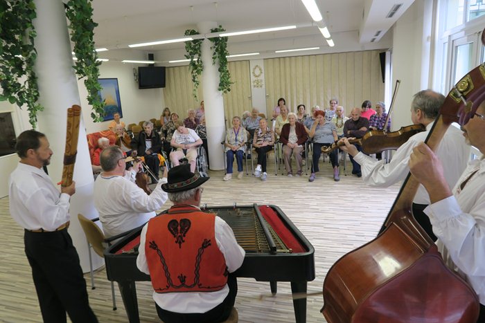 Vystoupení cimbálové muziky Fujárka v domově na Mikuláškově nám.