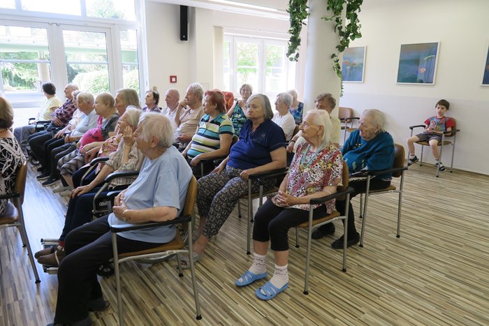 Atmosféra v sále byla neuvěřitelně příjemná a klienti, kteří zaplnili k prasknutí celý sál, s radostí a vděkem obdarovávali naše hosty potleskem v každé vhodné chvíli. Dokonce se na tuto milou událost přijela podívat a natáčet kamera zdejší městské části – Brno, Starý Lískovec.