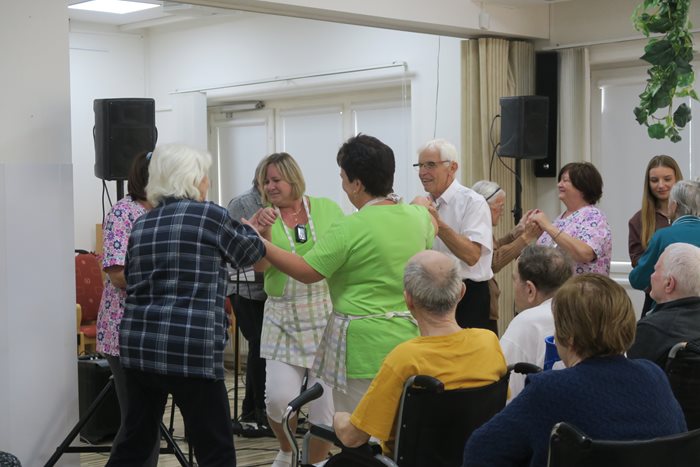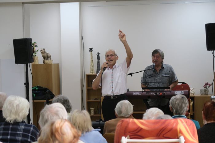 Příležitost poslechnout a zazpívat si lidové písničky využilo mnoho našich klientů a společenská místnost byla plná. Zazněly známé lidové písničky jako Vínečko bílé, Beskyde, Beskyde nebo Rožnovské hodiny. Pánové zpěváci nás provedli písničkami po různých koutech republiky například z Buchlova, Břeclavi, Hodonína, ale také z Valašska. Nechyběly ani modernější písně, a to třeba Schody do nebe nebo Když si báječnou ženskou vezme báječný chlap. Pan Jiří Helán je nejen skvělý zpěvák, ale i výborný tanečník. Roztančil nejen nás, ale i naše klientky, které se výborně bavily. Na rozloučenou nám zazpívali Morava krásná zem a nejedno oko zůstalo suché.