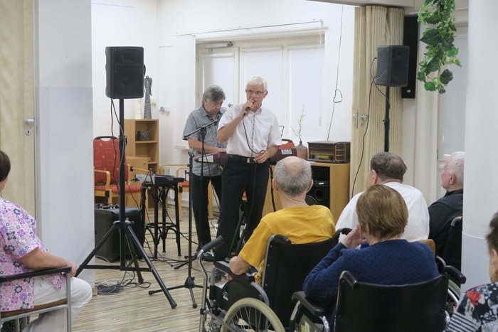 V pondělí 10. října 2022 přijel za našimi klienty muzikant, zpěvák, moderátor a člen kapely Moravěnka pan Jiří Helán, kterého doprovázel hudbou i zpěvem pan Rostislav Komosný.