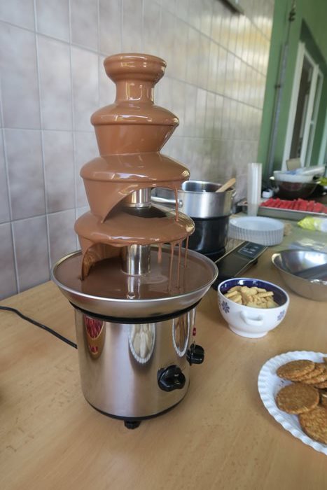 „Objednali“ jsme si výjimečně krásné počasí, zapůjčili čokoládovou fontánu, nakoupili spoustu ovoce rozličných barev a chutí, připravili lavory na koupele nohou – jak to dělaly naše babičky nám, když jsme byli malé děti a s kulisou hudby 70. let jsme si s klienty užili příjemně pohodové a vlastně i neobyčejné dopoledne.