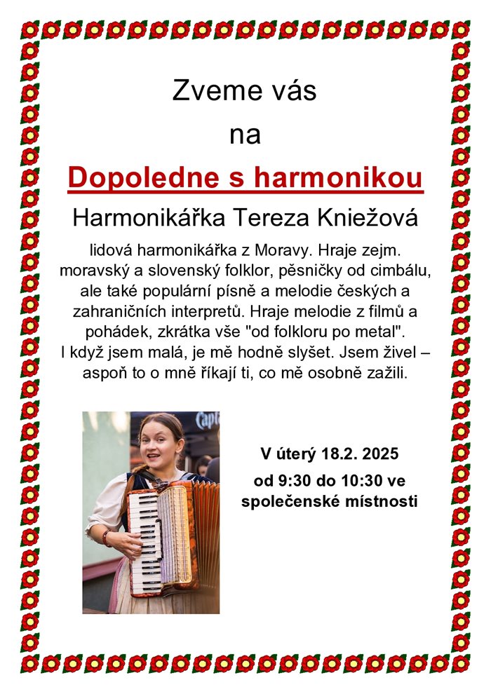 Zveme vás na Dopoledne s harmonikářkou Terezou Kniežovou.