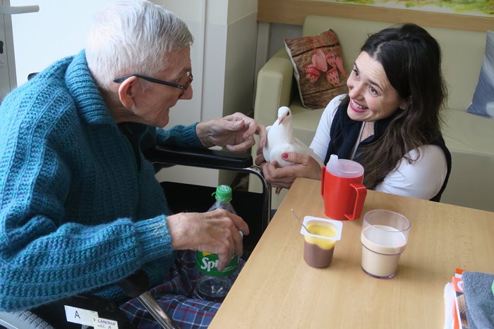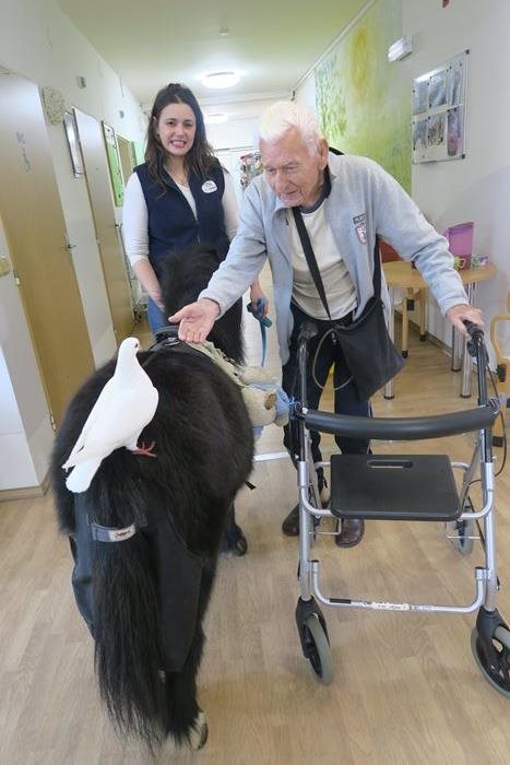Po zimní přestávce k nám dnes přijel koník Emil. Nedorazil však jen on. Společně s ním k nám přijel i králík a bílá holubice, která očarovala všechny přítomné. Děkujeme zvířeně i Veronice z Emil pomáhá.