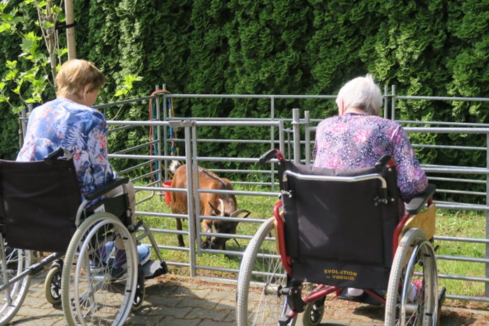 Dnes dopoledne na naši zahradu zavítaly 2 kozí maminky se 3 malými kůzlátky z Lamacentra Hády.