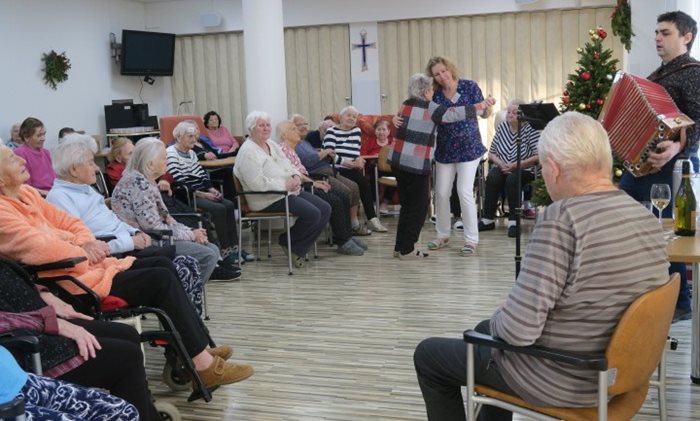 Díky heligonce pana Jana Hažmuky jsme si mohli na konci roku zazpívat i zatančit. Dopolední předsilvestrovské setkání s panem Hažmukou opět způsobilo radost na tvářích našich klientů. A že bylo veselo... Děkujeme.